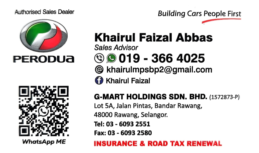 Promosi Perodua RawangAdakah anda bersedia untuk menukar kereta anda? Dapatkan kereta Perodua idaman anda dengan tawaran hebat sekarang!Jimat Minyak & Kos RendahNilai TinggiKadar Pinjaman RendahHubungi Sales Advisor kami: Khairul (0193664025)Jimat Poket, Senang Hat!